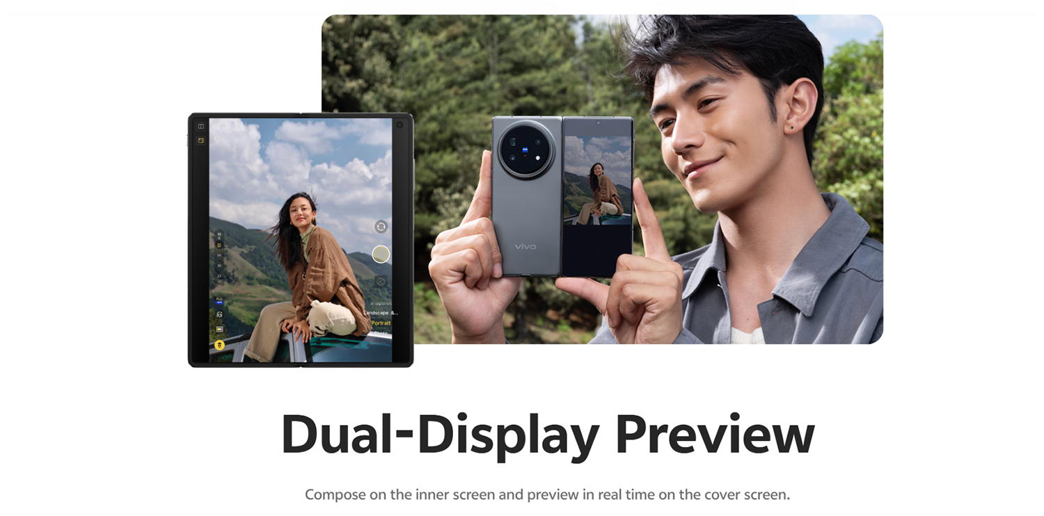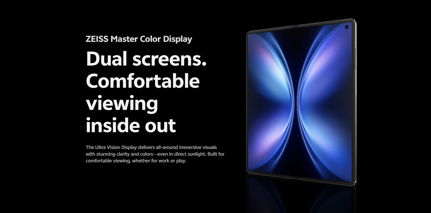 DISPLAY          ZEISS Master Color Display (Cover + Main) Foldable Display DISPLAY SIZE  Inner Main: 8.03-inch | Cover: 6.53-inch FINGERPRINT  Side mounted fingerprint RESOLUTION   Inner Main: 2480 × 2200 | Cover: 2748 × 1172 FRONT CAMERA         20MP Selfie Camera REAR CAMERA "Main- 50 MP True Color Main Camera, (IMX921) (f/1.57, 1/1.56"")VCS 2.0, Telephoto- 50MP , IMX882 (1/1.95"") (f/2.55)| ZEISS Telephoto Camera with 3x optical, zoom and up to 100x Hyper-zoom, Ultra-wide - 50 MP (f2.05, 1/2.76"") Features ZEISS Imaging System, ZEISS T* Optics, and 2Sony Sensors, Both Main and Telephoto cameras have CIPA 4.5- level stabilization." RAM+ROM     16GB + 512GB CPU     Snapdragon 8 Gen 3 (4nm, 3.3GHz Cortex-X4, Adreno 750 GPU, AnTuTu 2,203,013) OS       Funtouch OS 15 (based on Android 15) BATTERY         6000 mAh (2nd Gen Semi-Solid Battery Tech, Safe & Cold Resistant) Charger           80W Flash Charging | 40W Wireless Charging WEIGHT           217g THICKNESS     Unfolded: 4.3mm | Folded: 9.2mm PPI      Main: 412 PPI | Cover: 457 PPI ATTRACTIVE FEATURES          ZEISS Master Color Display – (True-to-Life Colors – Designed for Comfort + Precision Viewing) | India’s Brightest Fold Display – 4500nits Peak Brightness | LTPO 8T Display (Both Main & Cover) | 120Hz Ultra Smooth Refresh Rate | 2160Hz + 1920Hz PWM Dimming (Cover + Main – Eye Protection Tech) | 2K+ Ultra-Clear Resolution | ZEISS T Coating Lens | ZEISS Flagship Camera System (Triple 50MP: Main + Ultra-Wide + Telephoto) | ZEISS Telephoto Camera – IMX882 Sensor with 100x Hyper Zoom | ZEISS Multifocal Portrait – 23mm, 35mm, 50mm, 85mm, 100mm | ZEISS Portrait Styles – Biotar, Planar, Sonnar, Distagon, Cine Flare | TELEPHOTO MACRO & SUPER STAGE MODE | Dual Preview – Shoot with Main, Preview on Cover | AI Magic Move | AI Image Expand | AI Erase | Super Landscape Mode – Industry’s 1st in Fold | Snapdragon® 8 Gen 3 (AnTuTu 2.2 Million) | 16GB+512GB (LPDDR5X + UFS 4.1) | 6000mAh 2nd Gen Semi-Solid Battery – India’s Biggest in Fold | 80W Fast Charging + 40W Wireless Charging | Industry’s Only Fold with TRIPLE Protection – IPX8 | IPX9 |IPX9+ I IP5X | Works Even at -20°C | Carbon Fiber Sliding + Rotating Hinge (Flat Fold + Durability Boost) | Shortcut Button – Launch Camera/Notes/Flashlight Instantly | Origin Workbench – 5 Apps Multitasking | Dual-SIM Dual Standby (Nano + eSIM) | AI Note Assist | AI Captions | Live Text Extraction | Mobile Theft Protection + Security Chip | 60 Months Smooth Experience Guarantee* COLOR Titanium Grey